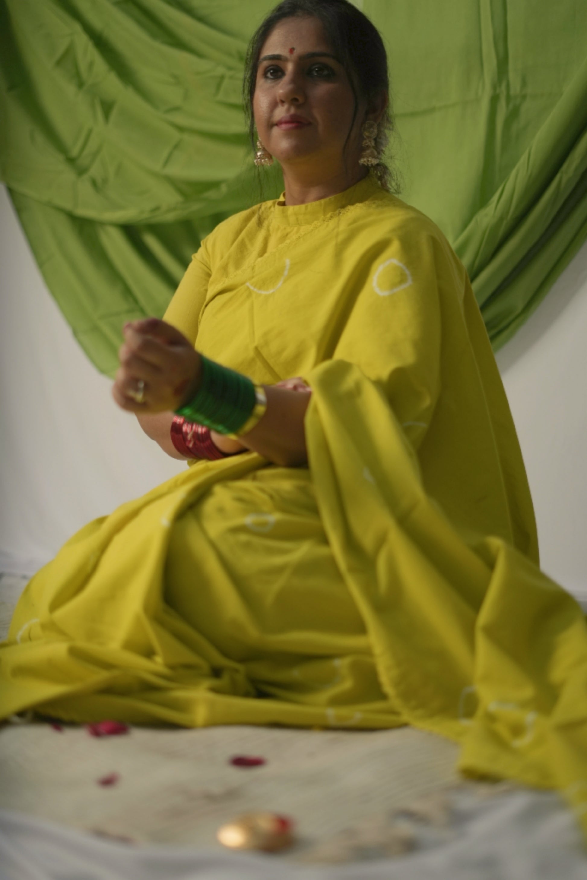 The tie and dyed saree is crafted from soft, durable, and breathable cotton fabric.