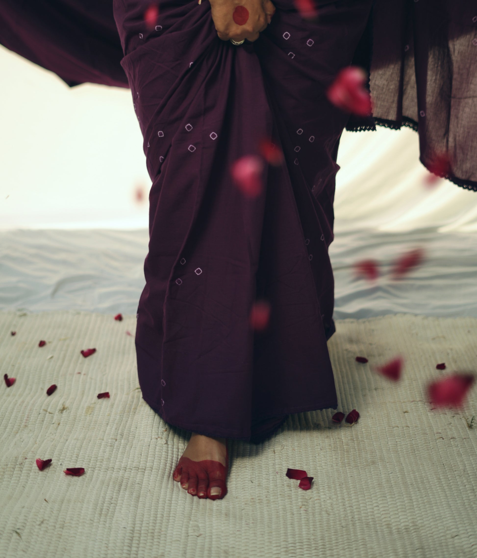 The saree is hand tied and dyed in azo free dyes.